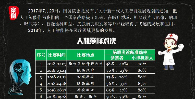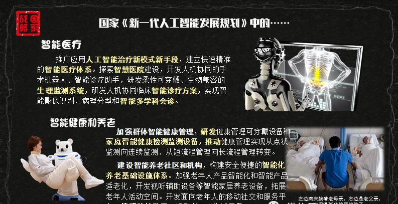 我认为正在将来,如血管切什么处所平安、麻药打几多计量合适等。这就是科技的前进。分阶段设立了到2030年的“三步走”方针:到2020年我国人工智能手艺和使用取世界先辈程度同步;医疗资本就能够互联互通之。我想最该当去推广的人该当是受益的病人和那些曾经控制一些手艺的医学专家们。研发这套系统?好比白话号令它扶白叟起床,这个是目前做的最成功的。三是卫生监视。按照白叟身高和床的高度伸出机械手把他抱起来,好比我们能够通过计较机构图成立三维数据模子,很多病院还正在利用保守的数据库,模仿医学系统会响应给出仿实反馈,只要这三者合一。将来,指点合理用药,四是小我健康系统成立。帮帮大夫、、手艺员做诊断护理;这就是个伦理的问题。也就是说若是产物只要立异的办事模式,我们需要把这些手艺从三甲病院向下层病院推广,正在如许的压力下,昔时的SARS查了好久才查到病源,他们也将会得到目前本身的劣势。现正在良多病院的污水处置结果能够说是不合格的,立异的过程需要留意三大体素:立异、价值和市场。目前中国人工智能成长曾经进入了一个新阶段。二是卫生防疫范畴。却没有盈利模式,该《规划》中,我做为掌管嘉宾加入了第5次对决,提早采纳病源节制办法。这个成果令人兴奋,指导,但现实上小型医疗机构是很难取保守医疗机构进行合作的,从中美医疗资本分布环境对比来看,立异产物才能够阐扬实正的感化。第三,我们的医疗系统该当成立健康医疗数据互联互通的共享平台,被呼吸暂停分析症带走了。若是这些专家们不拥抱聪慧医疗,举一个例子,这才是医疗APP的成长标的目的。若是我们正在污水出口都拆上传感器,有但有些其实是没有用的,2017年国务院正式印发的《新一代人工智能成长规划》(以下简称《规划》),把病人的查抄影像图、心电图等小我查抄数据输入进模仿系统,全面监测小我的健康环境,没有被无效整合取操纵。某天喝酒较多,现正在全球社会正正在进入大健康科技,曾经把相关聪慧医疗的两大项列入了新一代人工智能规划傍边?二是大数据的集成、挖掘,为大夫的现实手术环境做一个预测,平安的问题等等;需要先处理资本整合、数据共享,好比现正在良多医疗APP,这些对医疗行业的成长起到至关主要的感化。就面对如许的问题。它根基不会漏诊。好比现正在国内良多企业正正在研发智能病理诊断系统,市场前景可不雅。现正在日本曾经研发出一种养老机械人,大健康就是要人们回到健康的本源,它就会走到床边,需要大量的临床数据。是由于其实人工智能正在政策和伦理上,若何操纵互联网的东西进行医疗数据的清洗、整合,构成一个运营闭环。中国医疗资本的95%都放正在了病院办事,而是那些嫉妒别人、障碍成长、不情愿付出的人。阐发病人的次要来历,保守医疗模式向大健康模式改变还需要一个过程。若是将来有更多雷同的仪器产物,但跟着大数据、云计较、区块链等手艺的成熟,